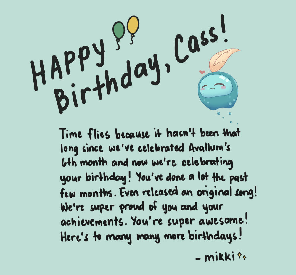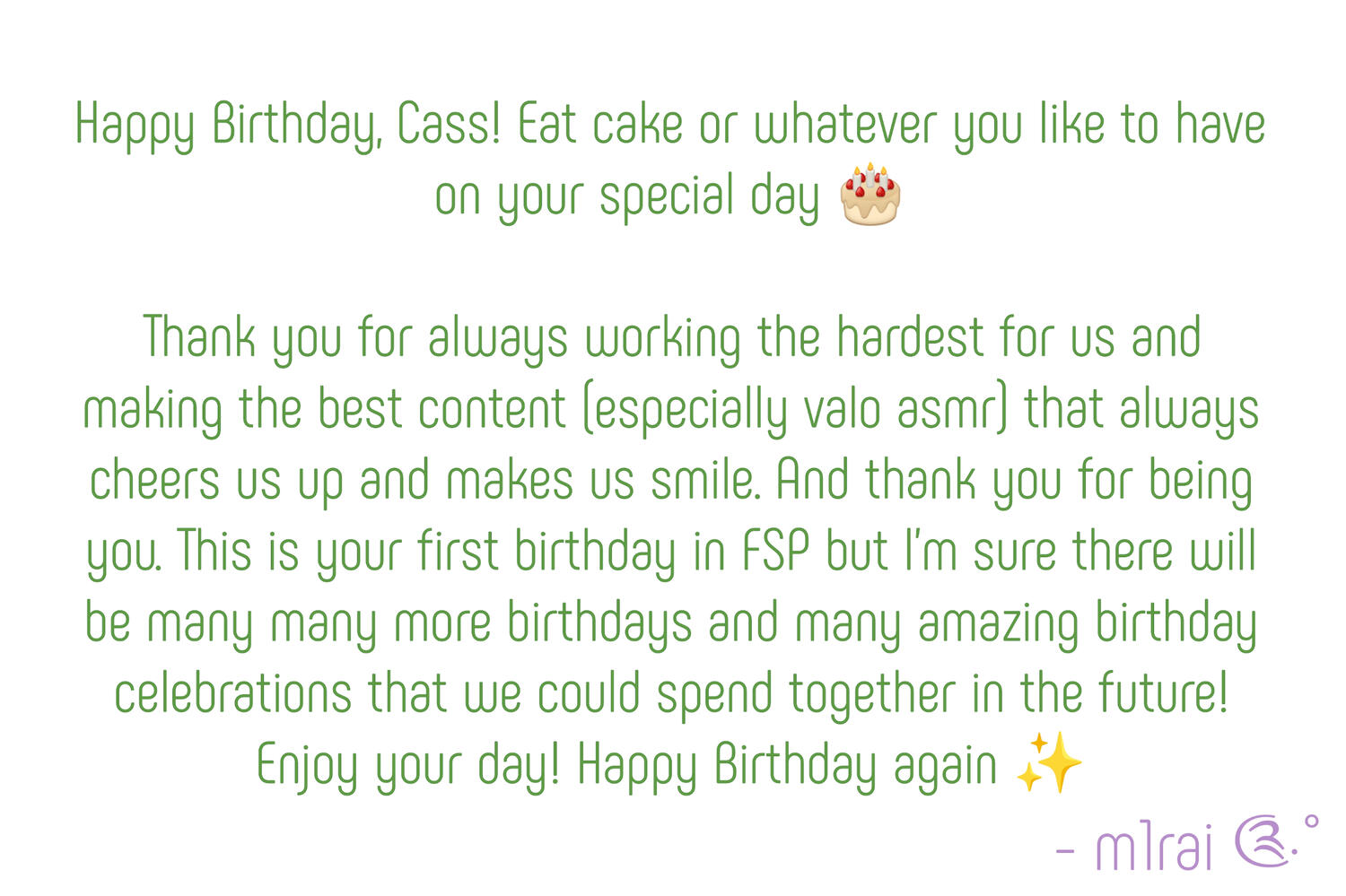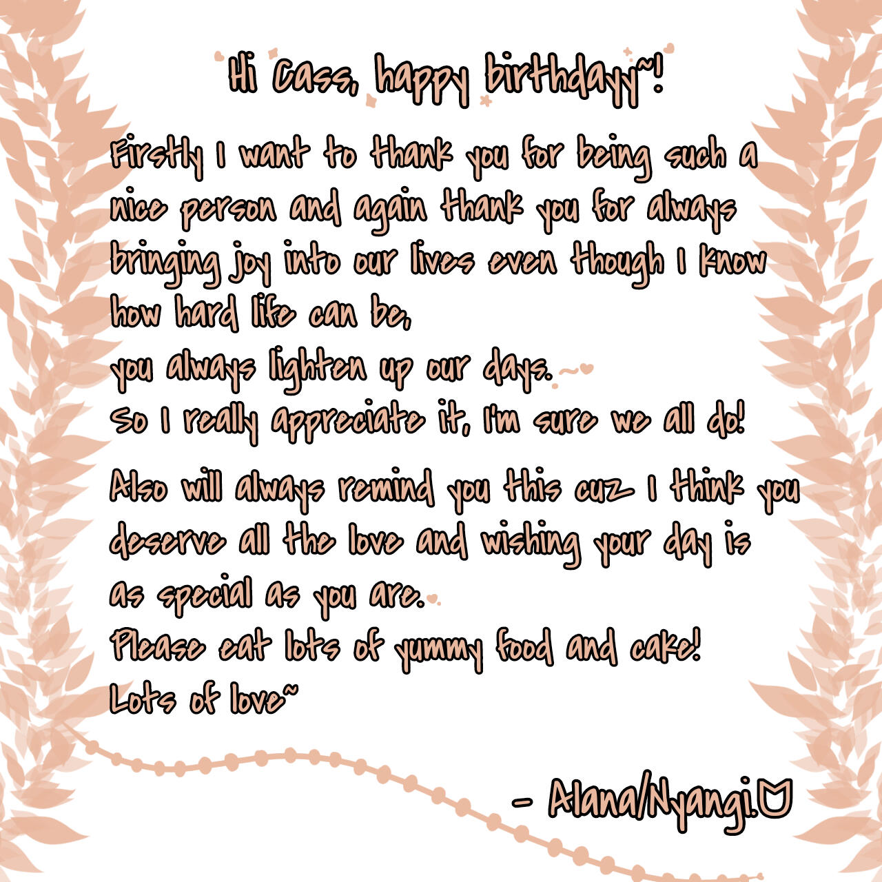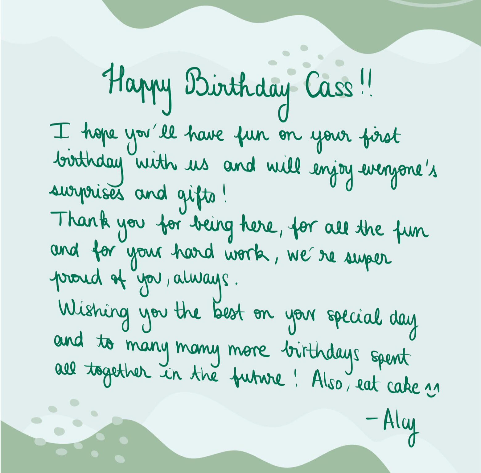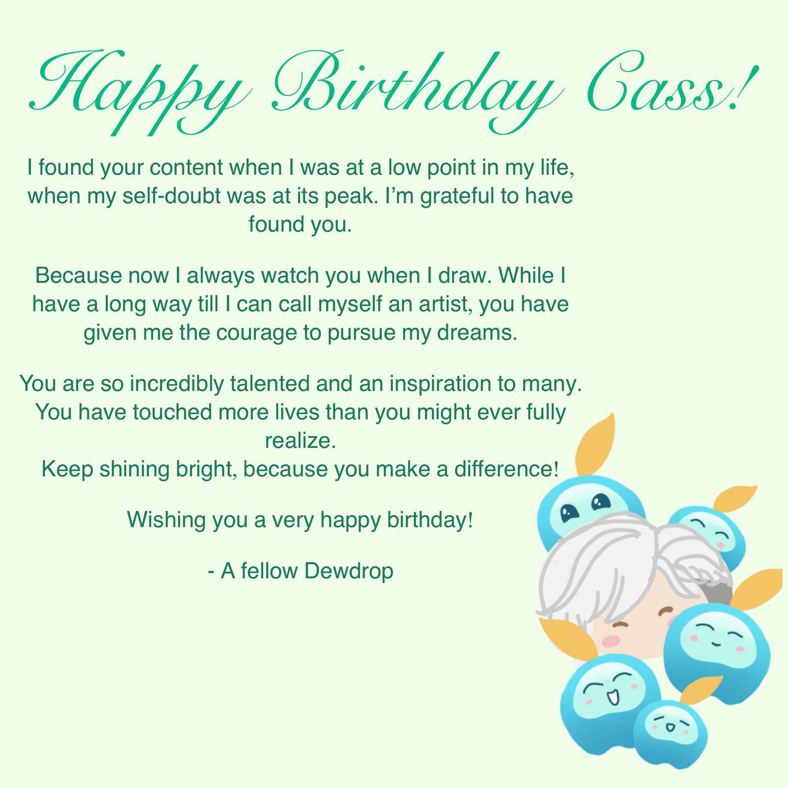 Happy Birthday Cass!We hope you'll have an amazing day with everyone, full of love and laughs.
